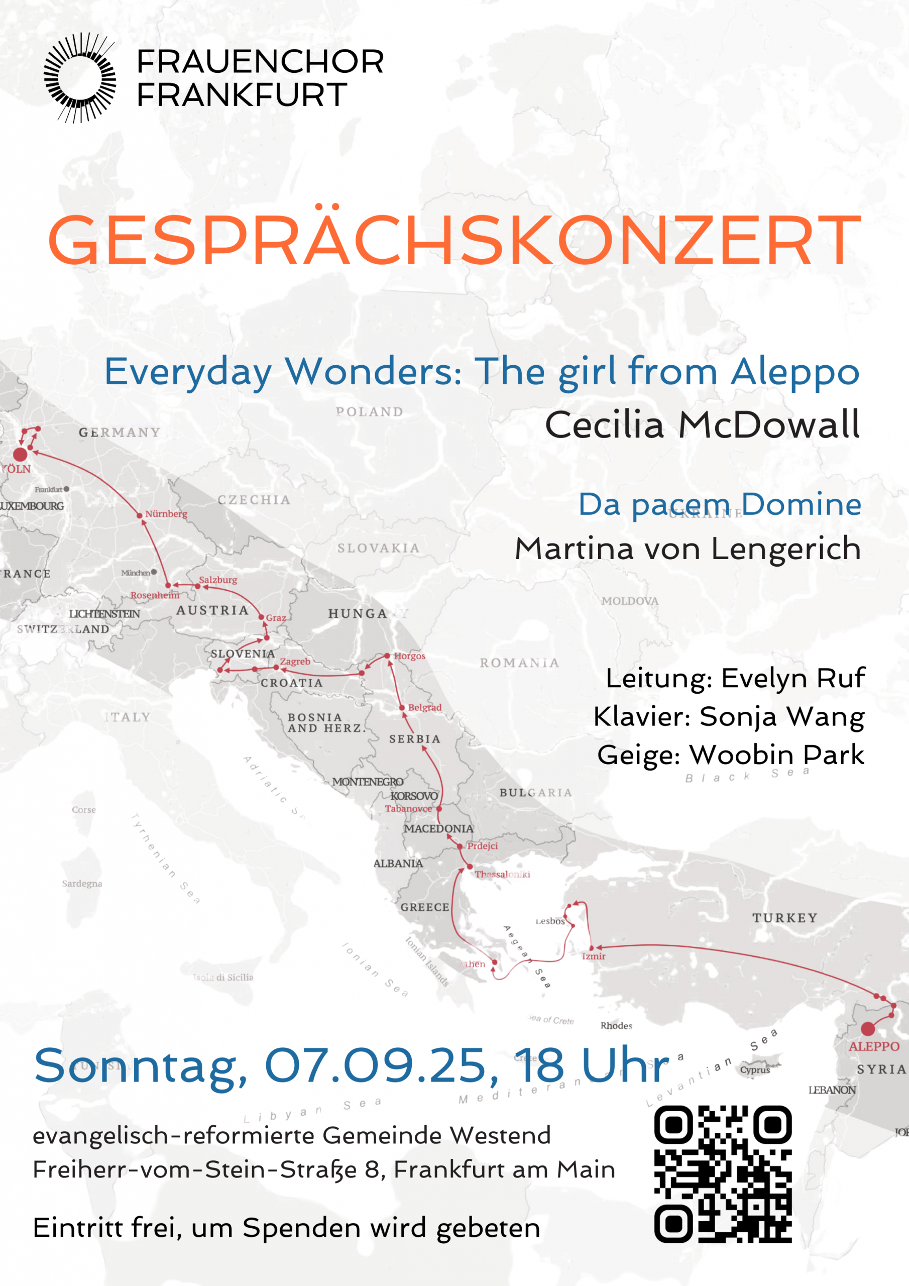 Cecilia McDowalls 2018 uraufgeführter Zyklus Everyday Wonders: The Girl from Aleppo für Chor, Solisten, Violine und Klavier steht wieder im Mittelpunkt des Programms.