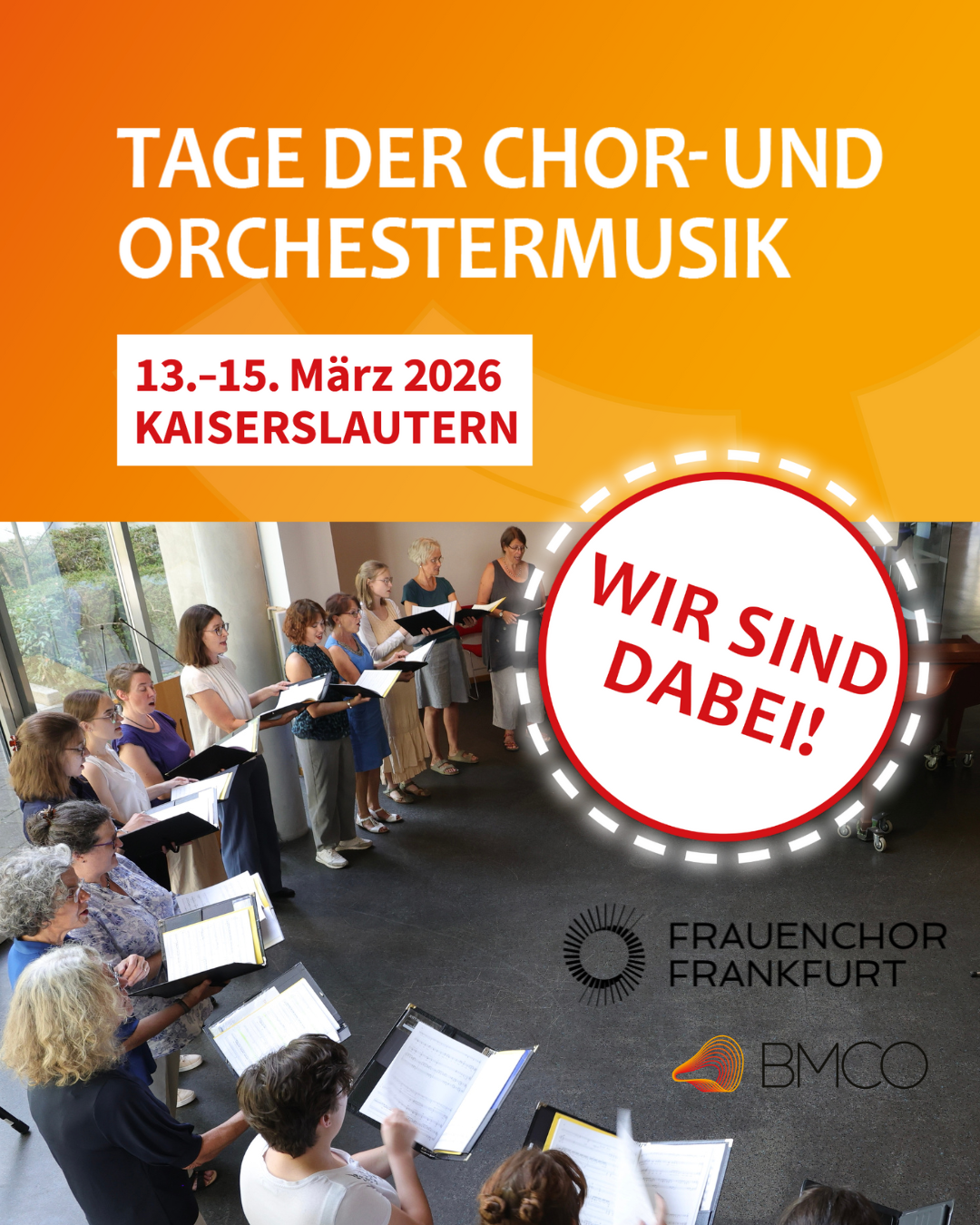 Wir treten am 14.03.26 bei den Tagen der Chor- und Orchestermusik in Kaiserslautern auf. Diese Veranstaltung wird organisiert vom Bundesmusikverband Chor & Orchester.